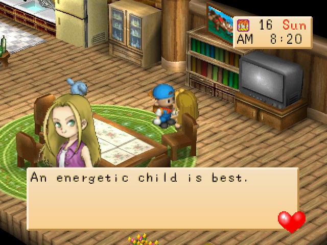 It's a game about a young man who's trying to live the farm which his grandpa's gave to him. It's full of wild grass and unfenced. You can also pick 1 of 5 girls in the town to be your wife. You can also have a baby, too ^^.